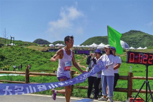 登山比赛,选手冲破八面山的云雾,奔向终点。