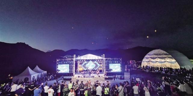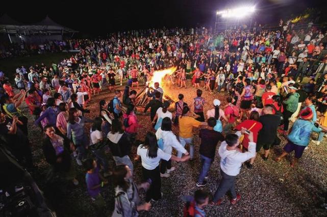 入夜后,漫天缤纷的烟花在星空绽放,熊熊的篝火燃起,人们欢呼着,围着篝火跳起摆手舞、唱民族歌、品土家美食、喝香醇啤酒,互相表达美好祝福。星空与篝火呼应,音乐与烟火相衬,浪漫与热情,在八面山地弥漫。