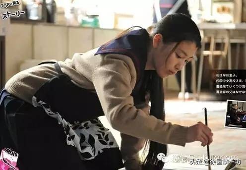 在四國中央市,有一所擁有八十多年歷史的學校——愛媛縣立三島高中。這所高中的書道部稱得上是“名門”,曾於03和04年連續在國際高中生書法展中獲得優勝。不過真正讓這所高中的書道部聲名遠播的則是別具特色的“書道表演”。通常所謂的書道(即我們所熟悉的書法),只是一個人靜靜對紙懸毫運筆,而該書道部的女孩們則把它變成了熱熱鬧鬧、頗具可看性的集體活動——“書道表演”。書道表演由數人組隊參加,大家配合背景音樂,在鋪於地面的巨型紙張上潑墨揮毫,有時配有伴舞者,更添氣氛。這些書道女孩們看著四國中央市日漸落寞,想用自己的方式讓故鄉重新充滿活力,於是便“發明”了這種表演。她們在大型購物中心等公共場所進行書道表演,吸引了許多人。女孩們純真的想法和執著的舉動不僅打動了觀客,也引來了媒體的注目。當地電視臺特別拍攝了跟蹤採訪的紀錄片
