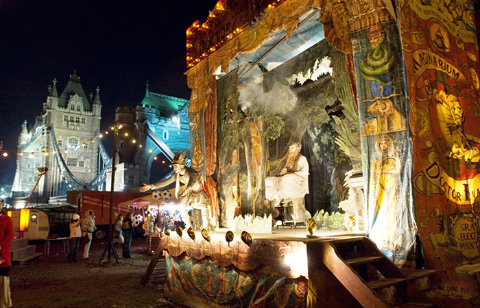 奇幻马戏团的帕那索斯博士在很早很早以前曾和魔鬼尼克打过一个赌,赢了魔鬼,并获得永生。许多个世纪过去了,帕那索斯博士爱上了一个女人,他为了能和她在一起又和魔鬼尼克做了一笔交易,用永生换取了青春,但魔鬼提出了一个条件:帕那索斯博士生的第一个孩子,不管是男是女,只要年满16岁,魔鬼尼克就会把他(她)永远带走。 帕那索斯博士生的第一个孩子(也是唯一一个)是个女孩,叫瓦伦蒂娜,她即将年满16岁,眼看着魔鬼所说的期限就要到来,帕那索斯博士心急如焚,于是他又和魔鬼尼克达成了新的协议:双方进行一场竞赛,谁先引诱到5个灵魂,谁就得到(或保留)瓦伦蒂娜。为战胜魔鬼,帕那索斯博士代女儿征婚,许诺不管是谁只要能帮他赢得这场博弈,他就把女儿嫁给他。于是,就有了男主角年轻人“托尼”(希斯·莱杰)的登场。