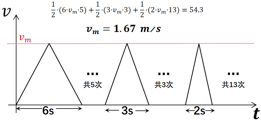 1分多钟跑50多米,看上去非常轻松。但游戏并不是单纯跑50米,而是静-动-静的非连续冲刺,每段会先加速后减速。简化模型下最大奔跑速度仅为1.67m/s。