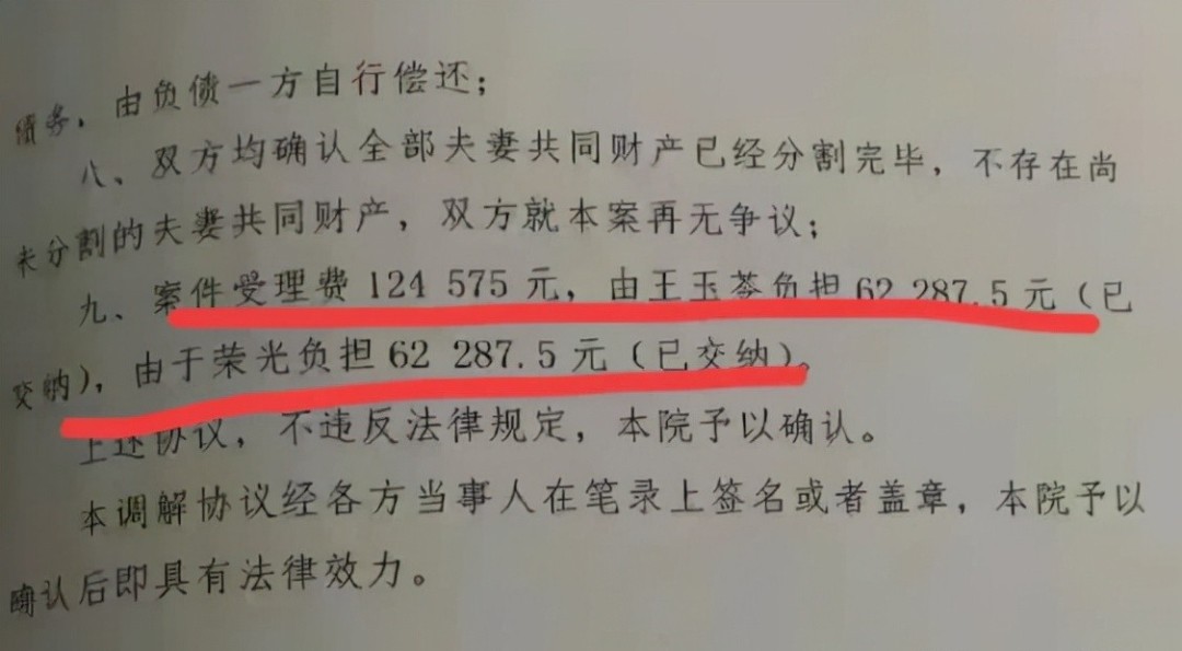 好在,从财产分割情况来看,两人没有闹得撕破脸皮,还给彼此留了一份尊严,就连诉讼费也是一人一半。