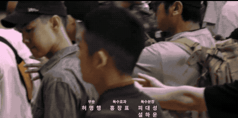 另外,《d.p:逃兵追缉令》的片头十分特别,不同于一般的片段剪辑,而是一段质感真实的成长纪录片,从出生到成人服兵役,是韩国普通男孩从小到大的必经之路。片头的最后,只有安俊浩转过头看向镜头,似乎在表达着他对制度和权力的凝视和诘问。