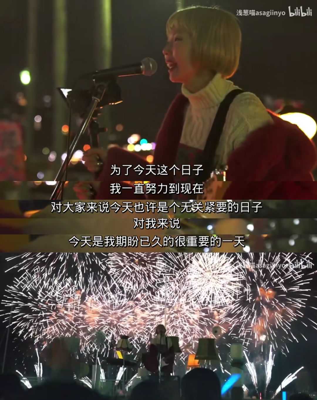 那晚,她帮助过的人们在台下为她欢呼加油,漫天的烟花在她身后绽放。