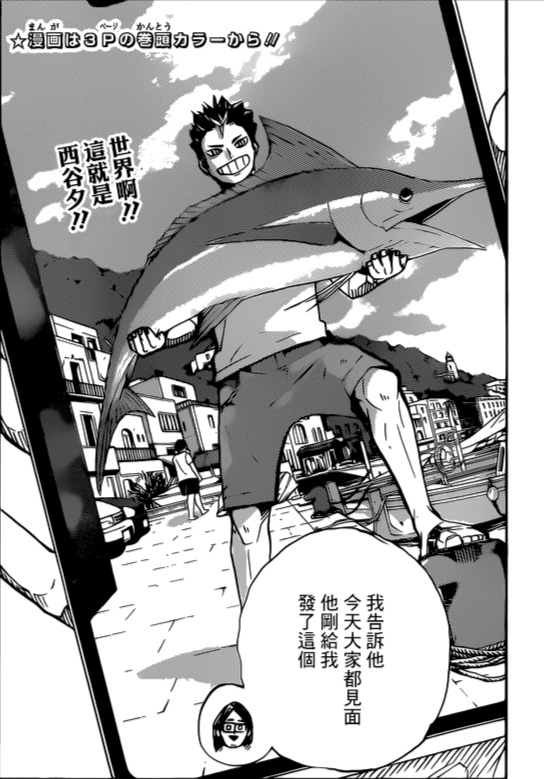 我们可爱可敬的西谷桑竟然是在意大利捕剑鱼(话说意大利最近的新冠肺炎疫情有点严重哈),万望保重身体,勿念。古馆老师给了开篇彩蛋——久违的彩页。除了这个,西谷夕还说出了许多刚毕业学生的心里话,先存点钱然后——“世界这么大,我要出去走走看看”。