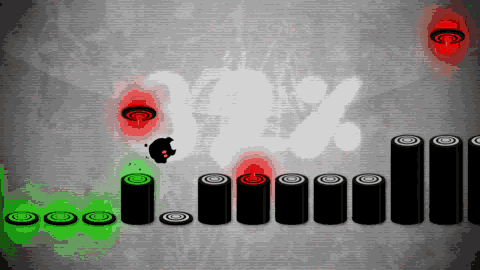 游戏主角是一个小墨点,跟随节奏跳跃,避开所有危险。