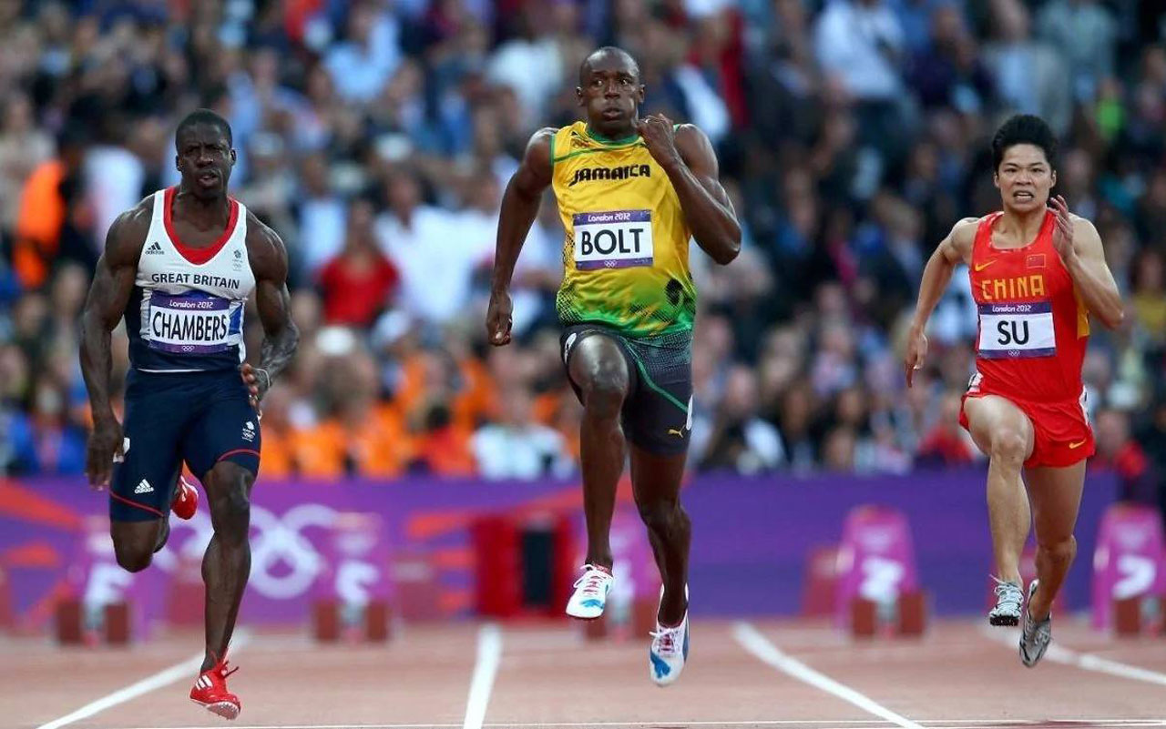 “怎么说呢,你看啊,我们物理是很简单的。物理研究的问题就是针对那些客观存在的物体的运动,对他们的规律进行总结。我举一个简单的例子啊,昨天看了世界田径锦标赛100比赛的实况,博尔特跑得是真快啊,9秒71夺冠了。”(图3)