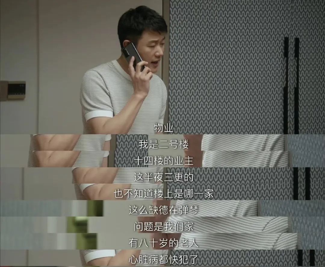 沈彗星在家练琴,他便偷偷走到一旁佯装邻居给物业投诉,称音乐声太大扰民,借由物业之手让妻子放弃在家练音乐。