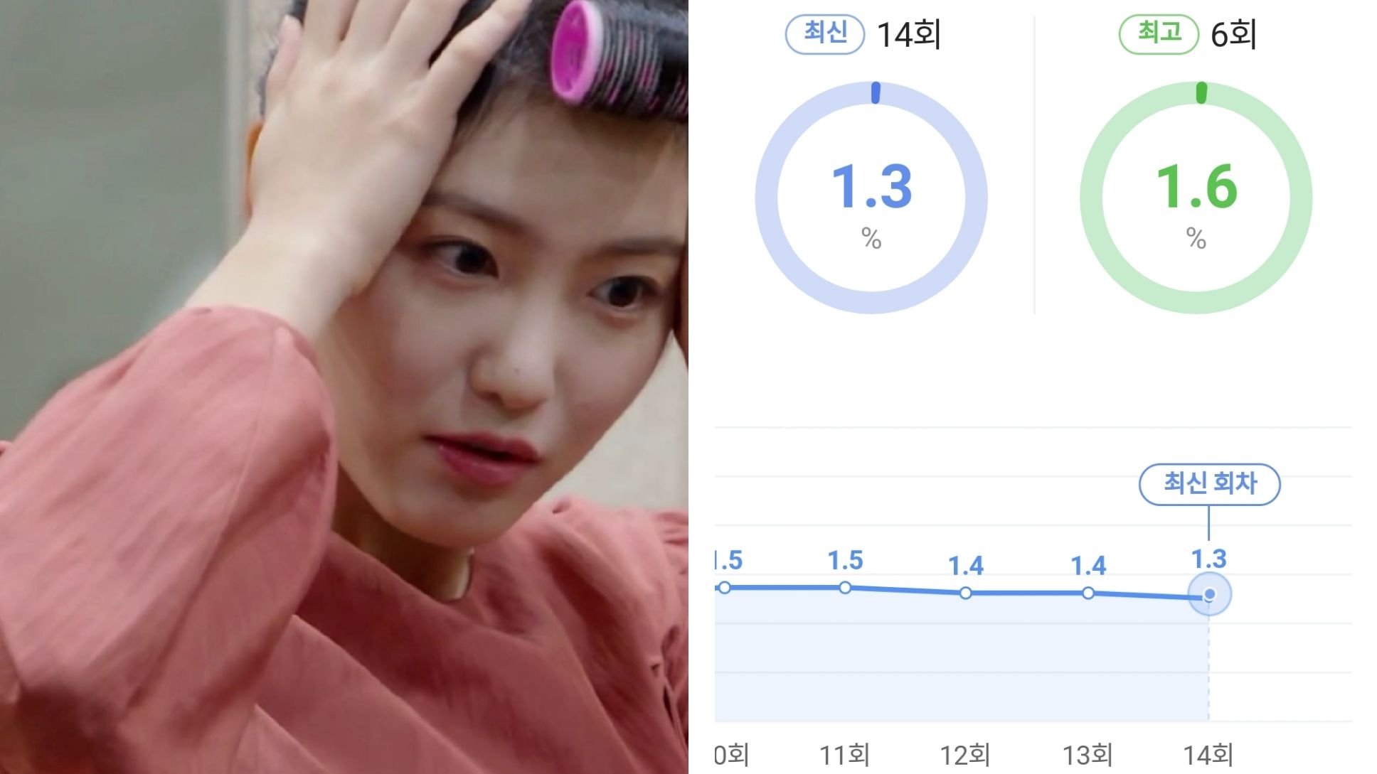 获得过两次演技大赏女子优秀演技赏的蔡秀彬,主演的上一部剧《一半的一半》,收视率最高2.449%,最低1.050%,平均1.405%。而且当时由于为了加快剧情进展,原定16集编成的《一半的一半》,直接被压缩成仅12就完结,大结局收视率:1.214%。