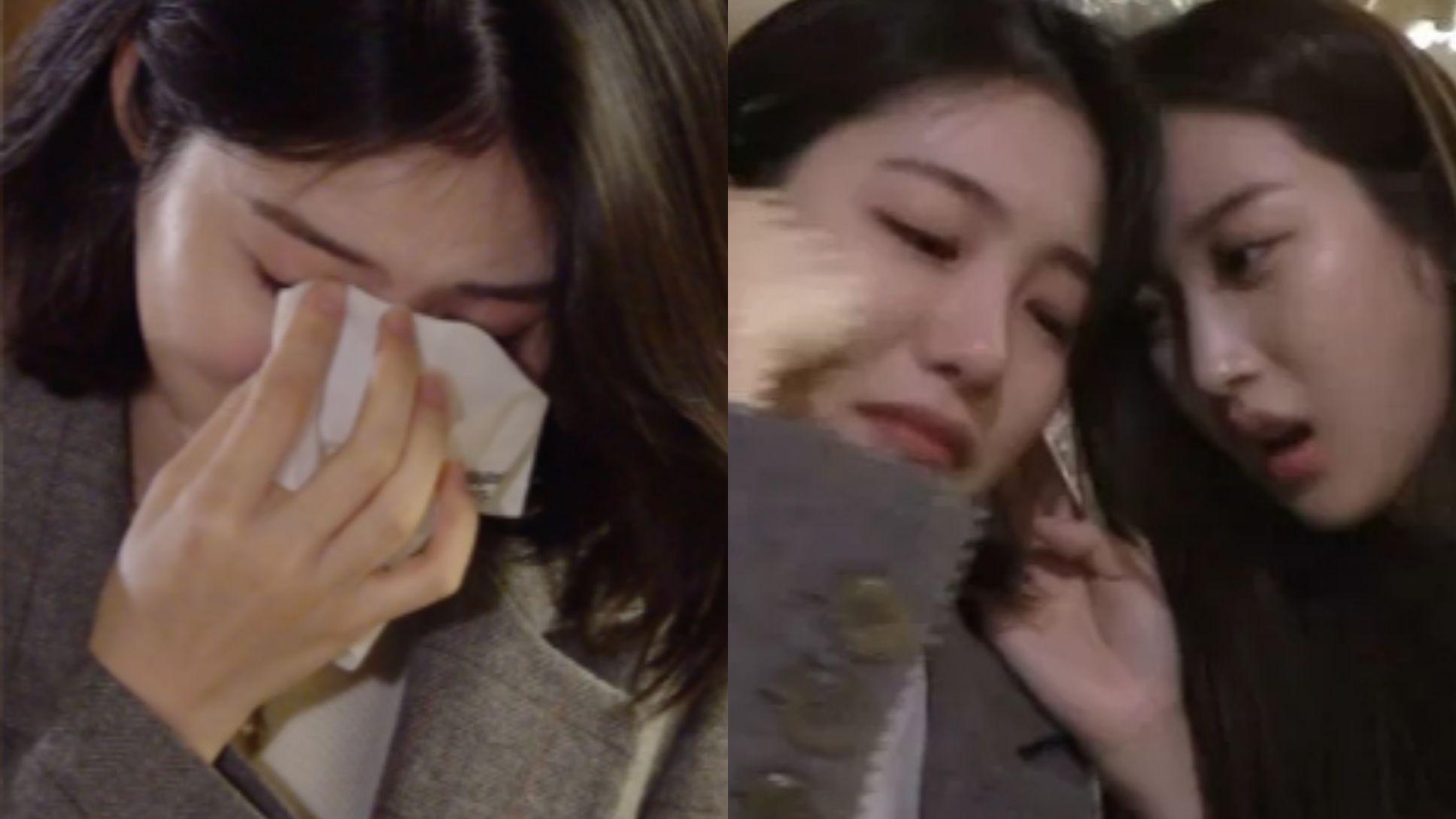 沉默了近半分钟后,忍不住掩面哭泣的辛叡恩带着哭腔说:“这个不能在节目中出现吧?我看见姐姐就…我没什么事的…”