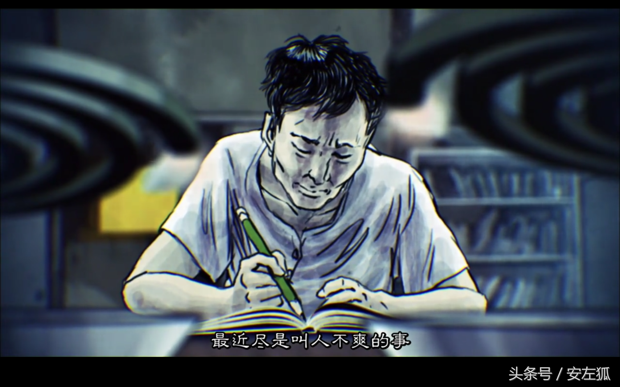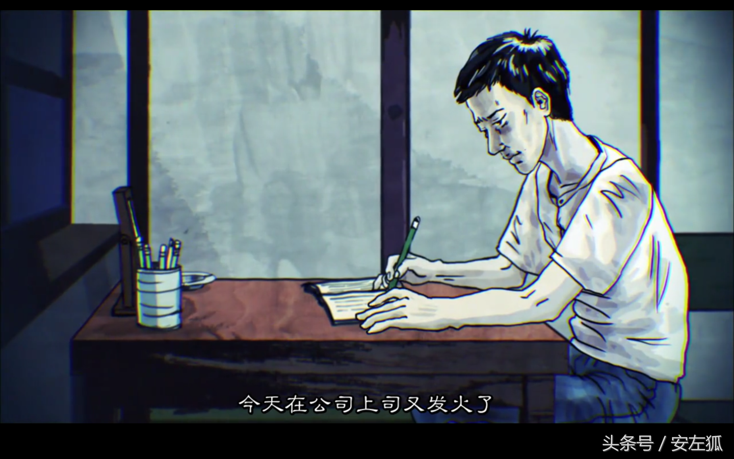 故事开始,瘦男每天下班回家都会写日记。