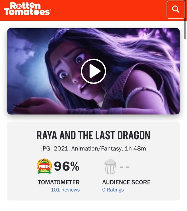3月3日,据猫眼电影报道,迪士尼最新动画大片《寻龙传说》口碑大爆,烂番茄新鲜度高达96。