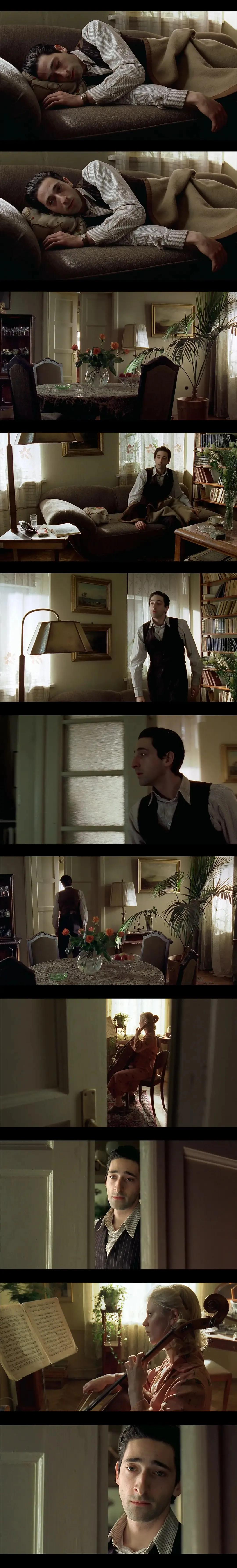 工友很快将斯皮尔曼送了出去,也有人接应他。但那个时候窝藏犹太人是重罪,只得将他不听的转移到别的住处,第一个住处里有一架钢琴。要知道钢琴就如同他的生命一般,但他的朋友告诫他千万不要发出任何响动。因为不远处就是以前他们修筑房子的地方,而旁边就住着不少德国人。斯皮尔曼打开琴盖,手指悬空在钢琴的琴键上。虽无声,但妙曼的琴声却从他的心中散发出来。