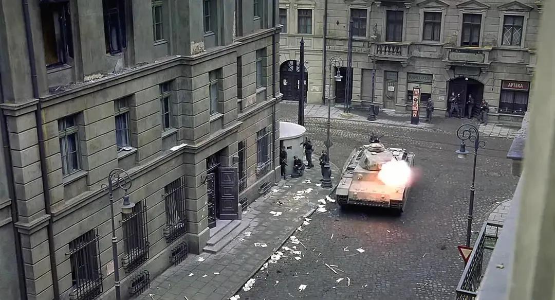 从开始的长枪短炮,到后来的便携式炸药。而发出的地方正是斯皮尔曼这栋公寓,他意识到德军一定会对公寓发动攻击,想要打开门逃跑,但门是被反锁的。这时德军的坦克已经开到了街上,对准他的公寓开炮。虽然没有轰炸到他,但炸药的威力使得他耳鸣,强大的冲击将他掀翻在地,但同时公寓也轰出了一个口子。他马上向外跑去,准备下楼但德军已经从楼下向上搜捕。