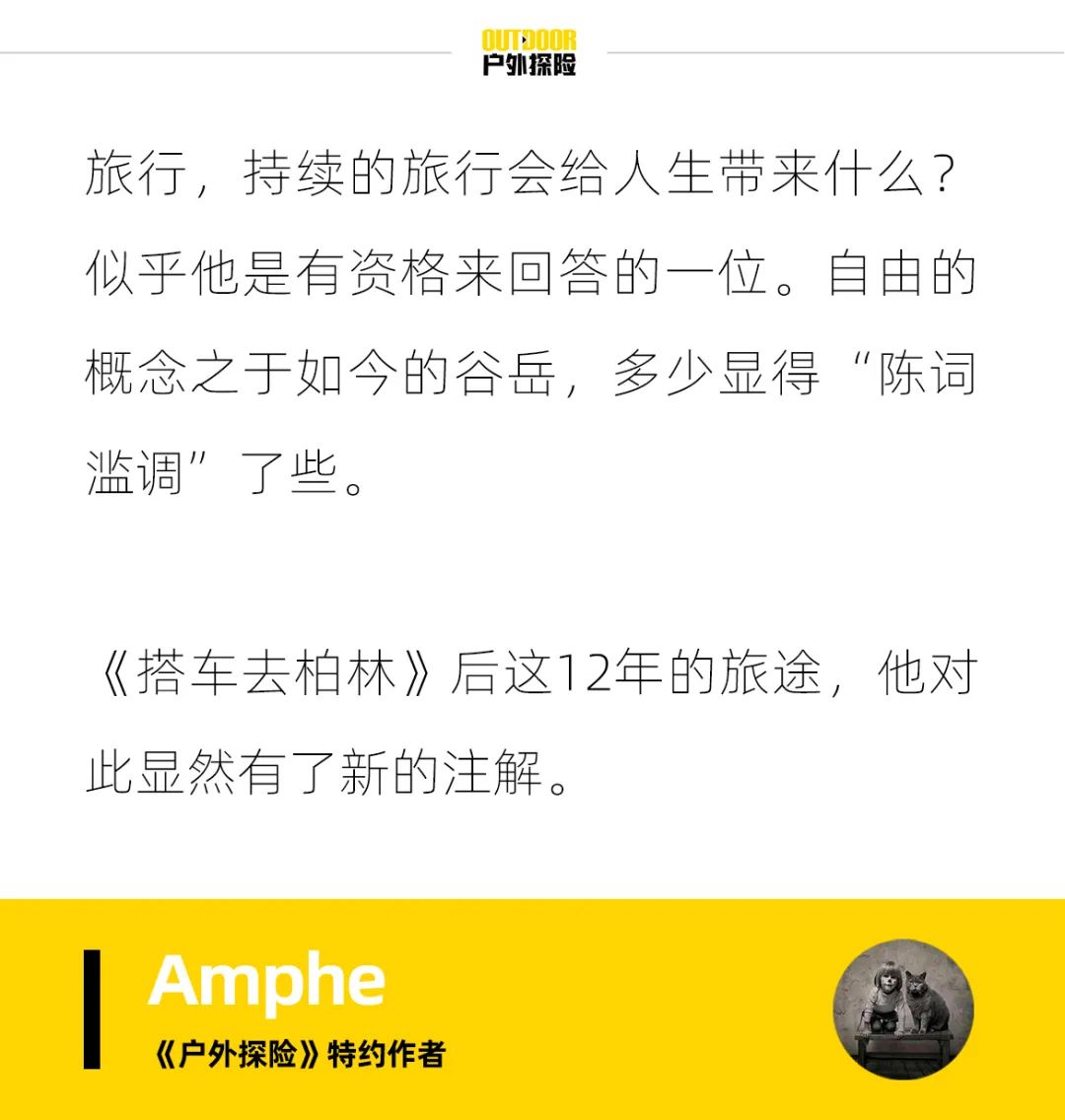会一直旅行下去么?也许会,不知道。在别人看来一直处于漫长假期的谷岳,时常觉得该给自己放个假。