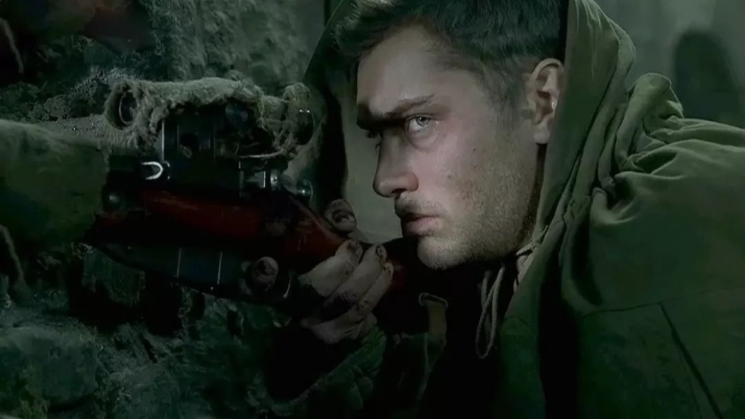 2001年7月21日上映的战争电影《兵临城下》,影片改编自作家威廉·克雷格1973年创作的同名纪实小说;由让·雅克·阿诺导演执导,裘德·洛、艾德·哈里斯等主演。《兵临城下》讲述第二次世界大战时,苏联红军传奇狙击手瓦西里·柴瑟夫与德军顶尖的神枪手康尼少校,在斯大林格勒战役中的一场生死之战的故事。在本片中,当时的苏联红军媒体就对那个牧羊人出身的神枪手瓦西里,塑造成传奇战斗英雄,极大的鼓舞了当时处于劣势的苏军士气;之后,德国为了打击苏军的士气,派出他们的顶级神枪手向瓦西里挑战,最后两人在战场上一决高下。【这是苏联人的故事,法国人导演,英国人主演,在德国拍摄,美国电影公司出品,相当全球化。】