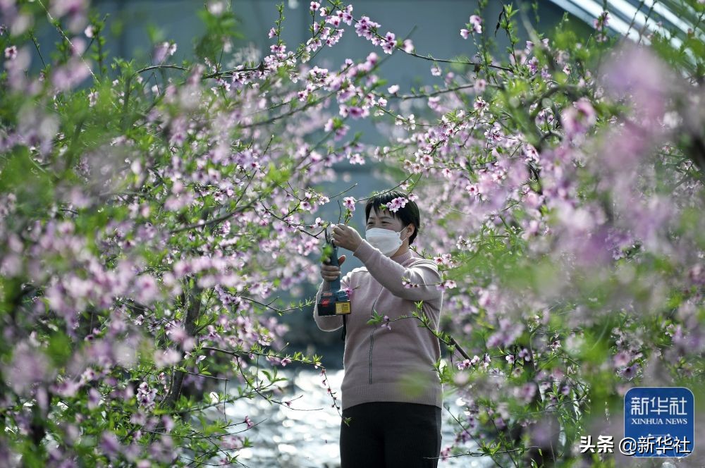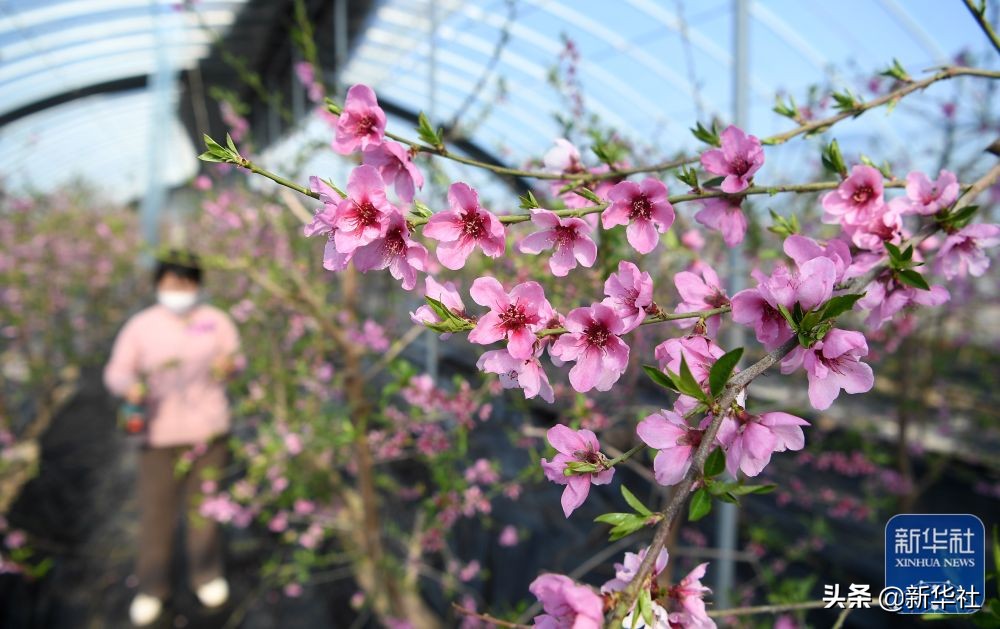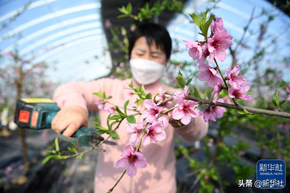 立春过后,宁夏青铜峡市大坝镇韦桥村的20多栋现代化日光温室内绿意盎然,农户在大棚里忙碌,为桃树疏果、剪枝。