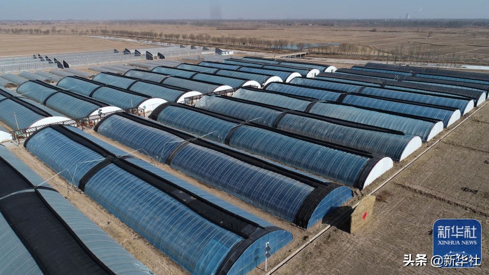 ↑2月15日拍摄的青铜峡市大坝镇韦桥村的日光温室(无人机照片)。