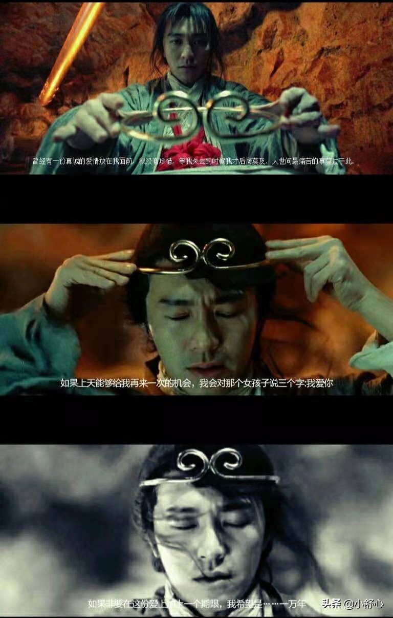 他决定戴上紧箍咒,恢复无穷法力,解救紫霞脱离苦海。甘愿接受观音的完全脱离尘世、一心一意保护唐僧西天取经的条件。在戴上金箍前,他再次说了那一段经典的话:曾经有一份真诚的爱情摆在我的面前……