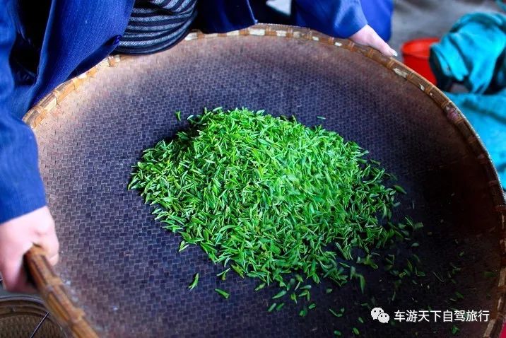 岛上成片成片的茶园,近岛的村民正忙着采茶。这就是贡茶,茶园里,还有一两间简房,里面正炒制着刚采下来的贡茶。顿时香味扑鼻,沁人心田。