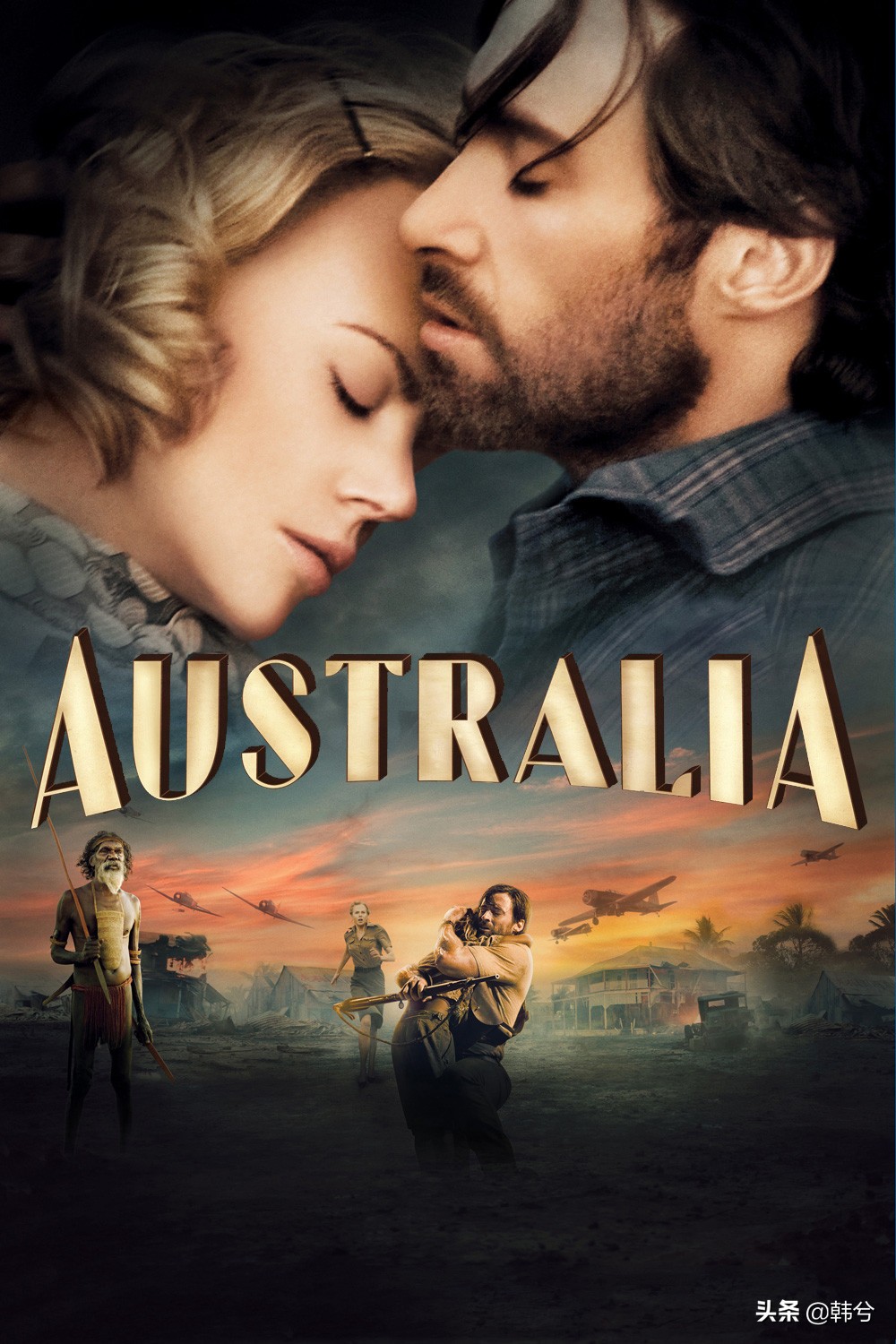 随之而来的便是一桩生意地争夺以及一段爱情的培养,这也是影片中最令人陶醉的前半部,虽然波澜壮阔甚至有些华丽的澳洲风景与气势磅薄的奔牛场面映入观众的眼光,令人有种惊叹之感,但所有这些人物之外的景深并没有与剧中人物达到真正的统一,于是,看奇瑰之景,看卑劣手段以及看情感升华便各自为营了。其中最具有戏剧性的一幕无疑是混血小孩在悬崖边上止住奔牛的场景,这可以说是整部影片中内部矛盾的最大体显,关于善恶,关于生死,关于澳洲的神秘力量。