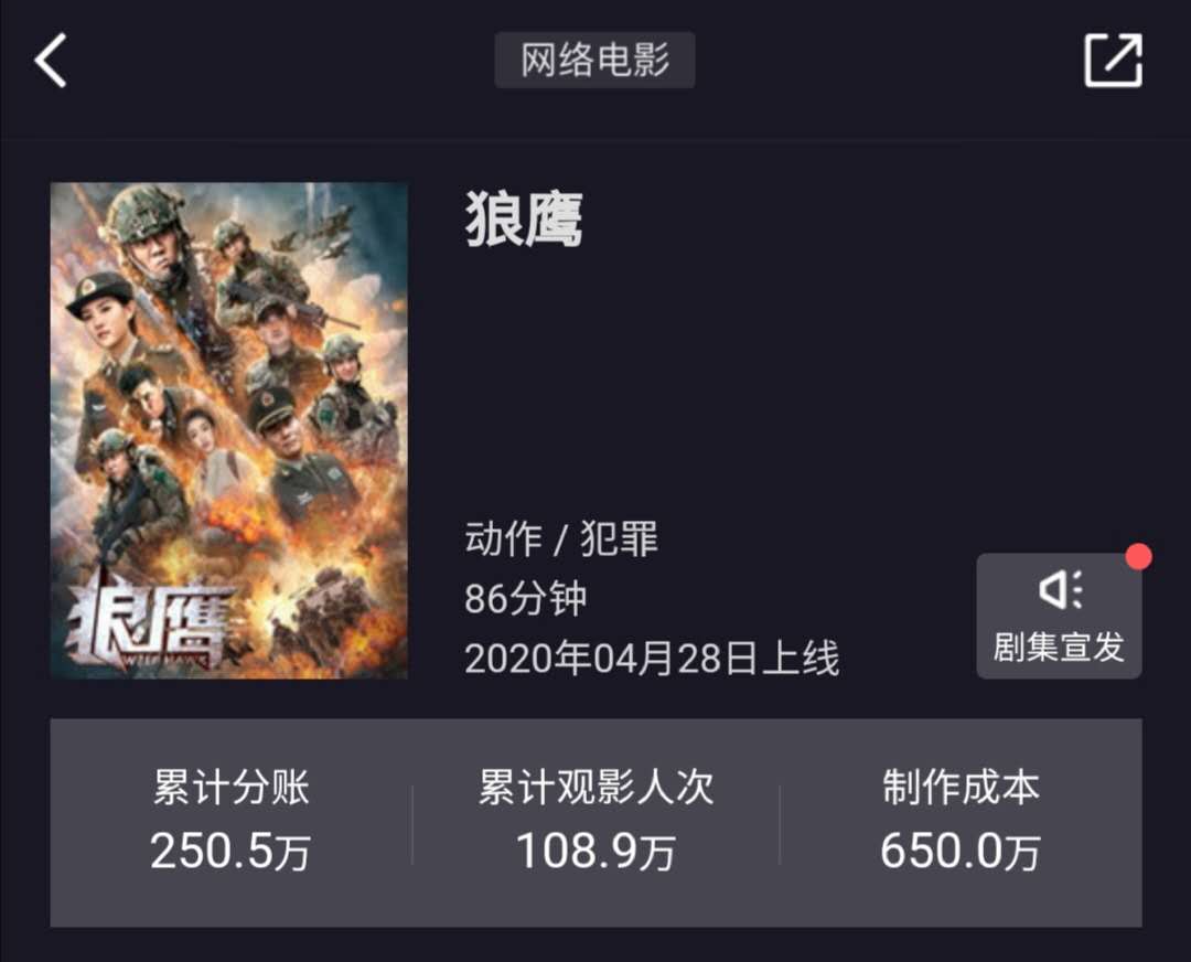 上线两天分账票房250万,对于这部小成本网络电影来看,这样的分账票房还算可以,毕竟其投资成本仅仅600万。