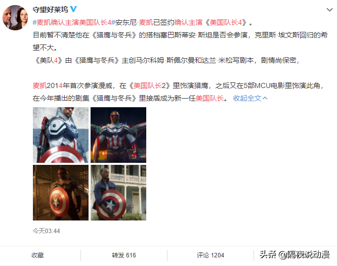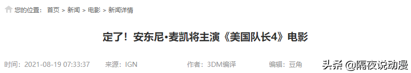 又过了几个月的时间,就在8月19日当天,从外媒那边传来了消息---“猎鹰”演员安东尼·麦凯确认主演《美国队长4》。