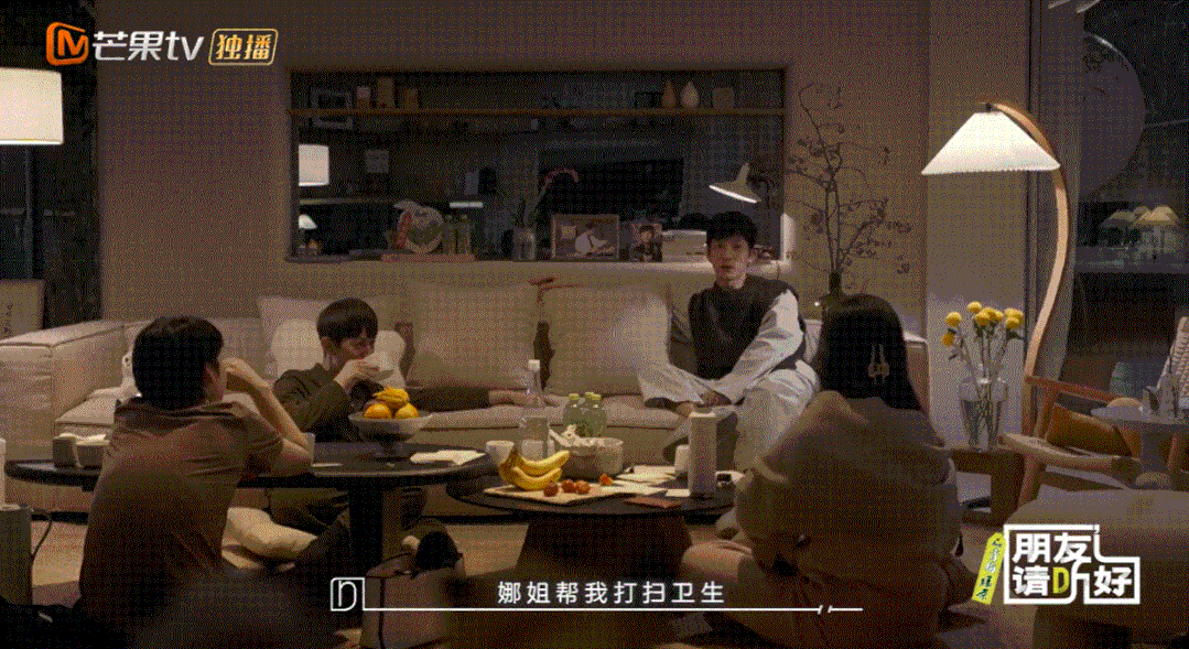 当嘉宾们围坐在一起读听众来信时,小屋内部的光影极具层次感,日式的暖色调营造出了别样的观感。