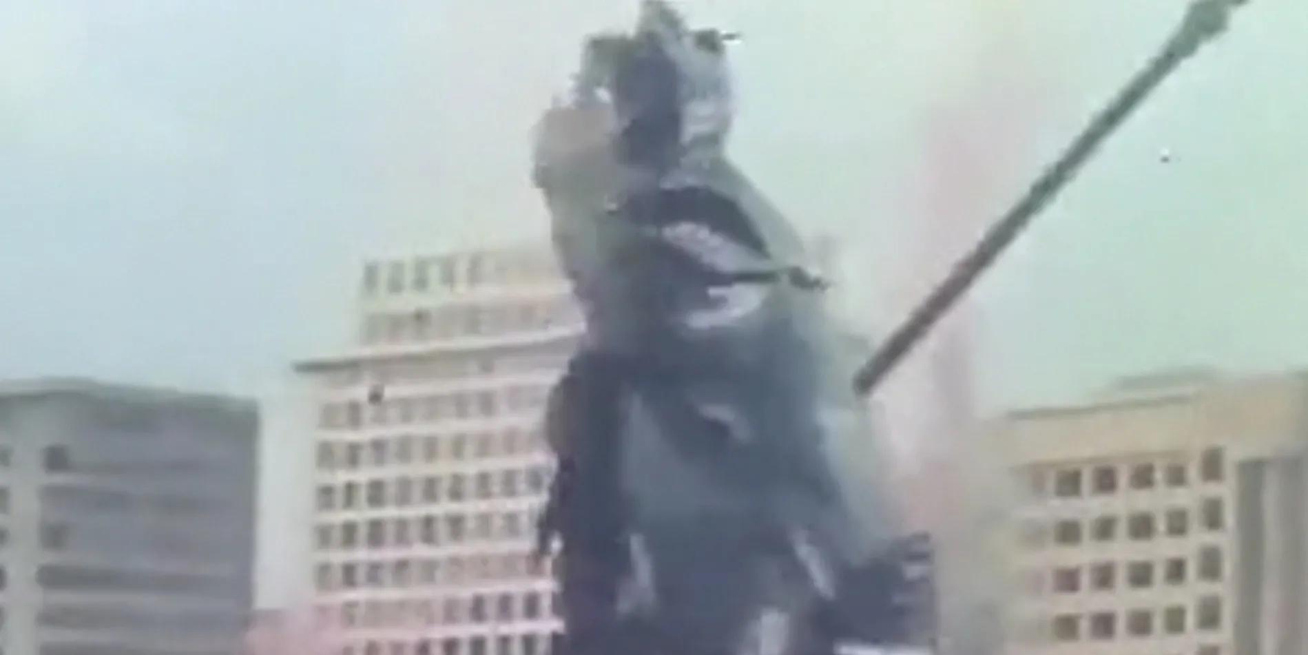 当然国产特摄在70年代的尝试除了等身特摄以外,同样也塑造了巨大英雄的形象,76年电影《关公大战外星人》中武圣关羽下凡,挥舞着82米的青龙偃月刀剿灭破坏城市的外星人,救万民于水火。