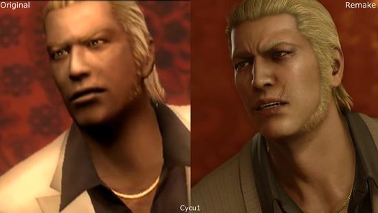 细节的飞跃显而易见,重制后的角色与原版气质还是有很大区别。相比2代泰然、冷峻的桐生眉宇间平添了一抹怒气和血性,龙司好勇斗狠的性格,狭山薰的傲娇,也随着表情的细化而表现更为突出。伴随越来越多的娱乐界俳优真人加盟,配角们纷纷整容,爱看日剧的玩家找找熟面孔也不失为一种乐趣。当然也有整容失败的反面教材——例如这位高岛辽同学,原本是个瘦削知性气质的腹黑反派,如今却沦为在一堆黑道里严重缺乏辨识度的油腻大叔,其长相本身恐怕就是一种剧透了……