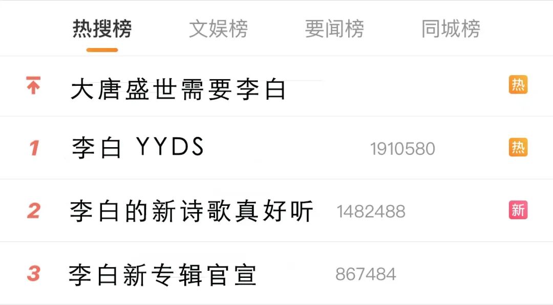 当其屡次凭借#李白新专辑官宣#、#李白的新诗歌真好听#、#李白 yyds#等话题登上“盛唐文学top榜”时,既有颜值又有才华的李白,成为了那个时代当之无愧的“顶流爱豆”。