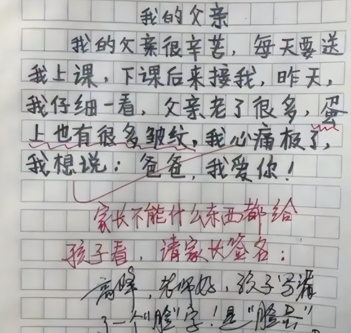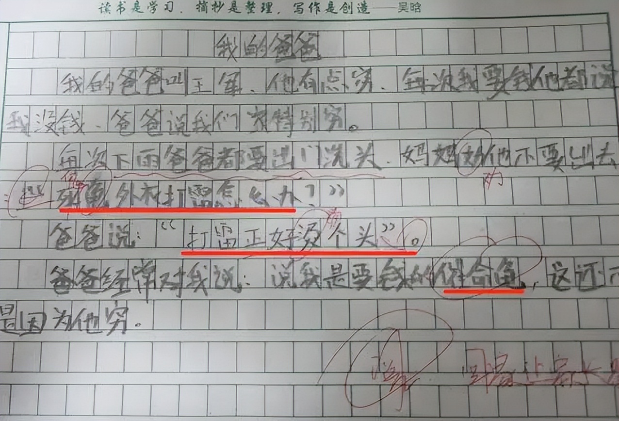 或许是父亲经常去休闲场所放松,在生活中也提及过“一条龙服务”,小学生就将这样的改变引入到了自己的作文中,而“经常”两个字也不禁让很多人为爸爸捏把冷汗,估计妈妈看到之后会不会脸都气绿了,老师也有些无奈小学生真的是一点秘密都不给家长留。
