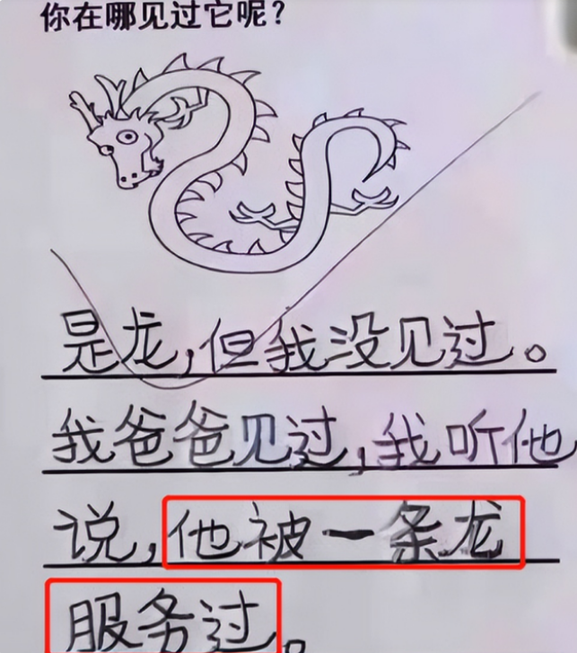 不仅是家长的言语会影响学生的观念,家长在生活中的行为也会影响小学生,就像是这位小学生就在作文中不小心曝光了爸爸的行踪。“一条龙服务”在很多人的印象中都是指以某件事为核心进项全方位的服务,但是小学生却有些不明所以。