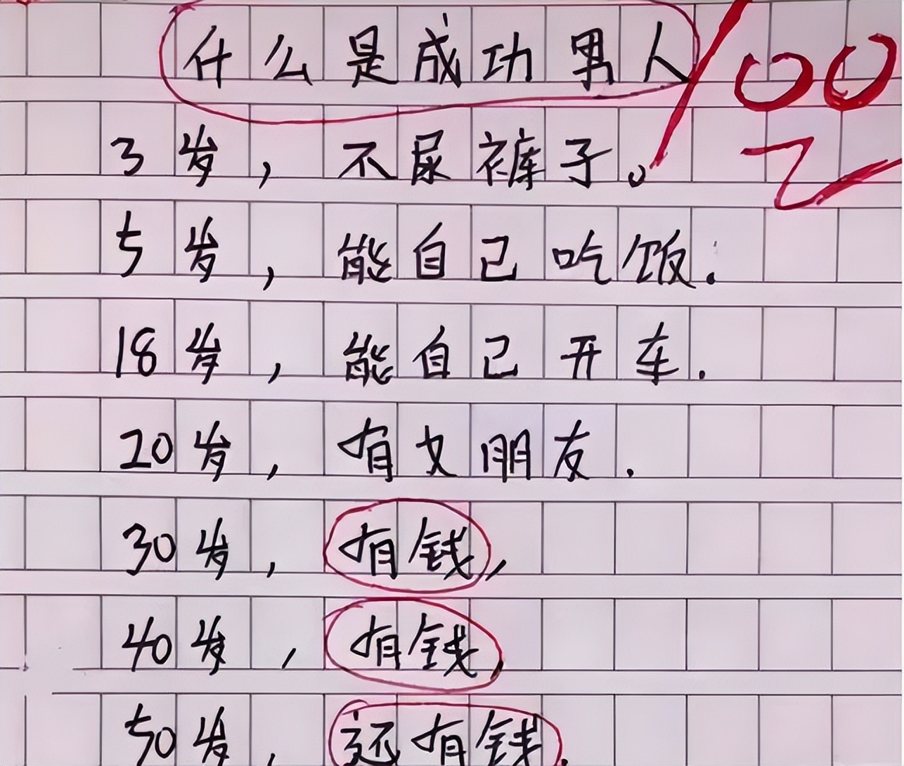 “3岁不尿裤子”,小学生作文《什么是成功男人》,老师无奈扶额