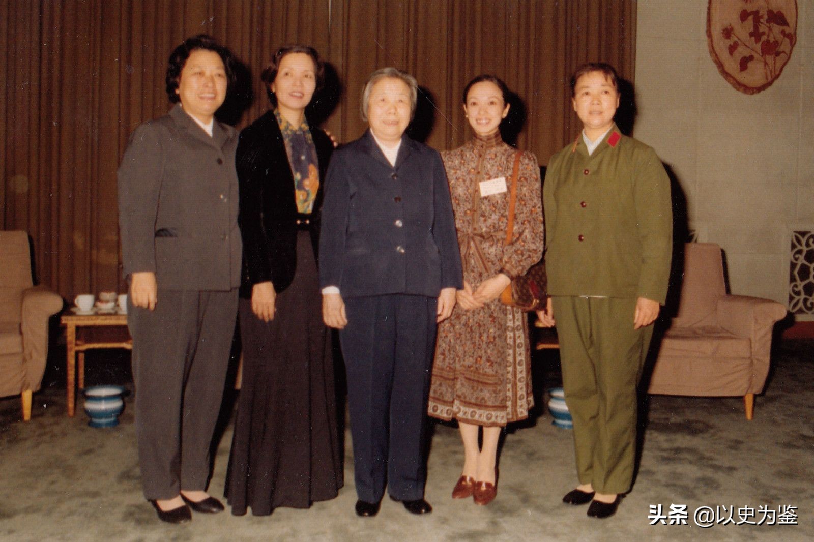 图注:1978年邓颖超与王昆(左一)森下洋子(左二)、田华(右一)、松山树子(右二)