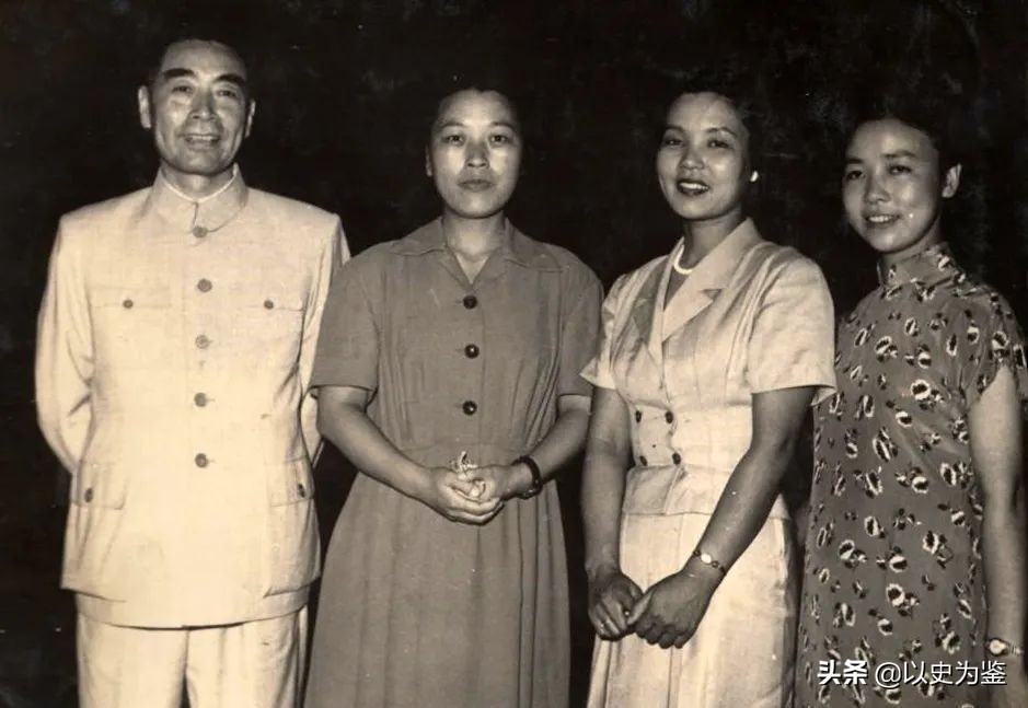 图注:总理和三位“喜儿”合影,右一田华,右二松山树子,右三王昆