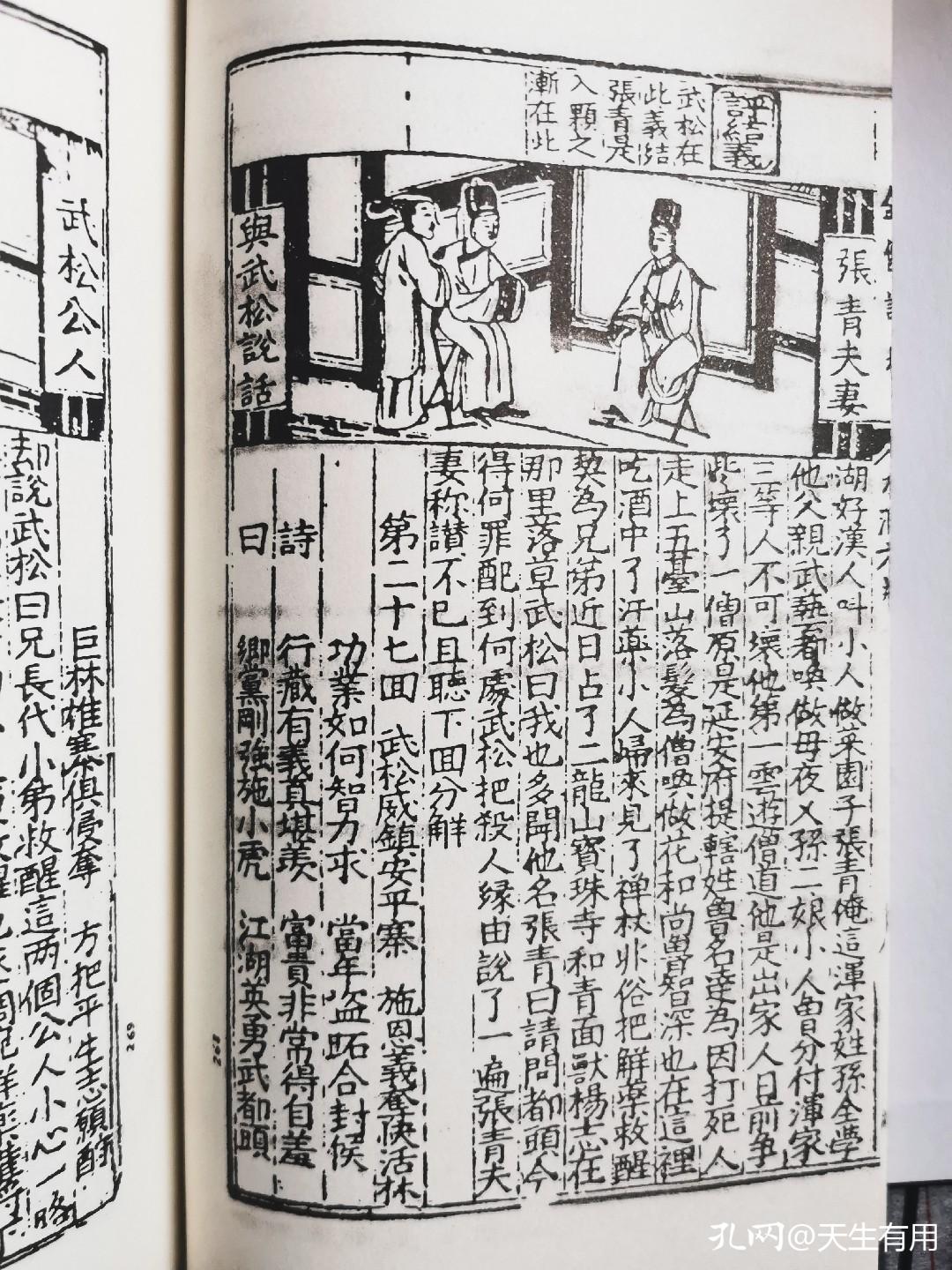 《水浒志传评林》,这个本子是现存最早最完整的简本水浒,是明朝万历二十二年(1594)福建建阳余氏双峰堂刊本。全书二十五卷,120回,有木刻插图1236幅,本书款式如连环画式,每页一图,版框分三栏,上栏评语,中栏图画,下栏正文。这套书是我参加游览东平县水浒影视城所购,据前言所说,这是东平县举办《水浒传》国际学术研讨会,印赠与会学者的。