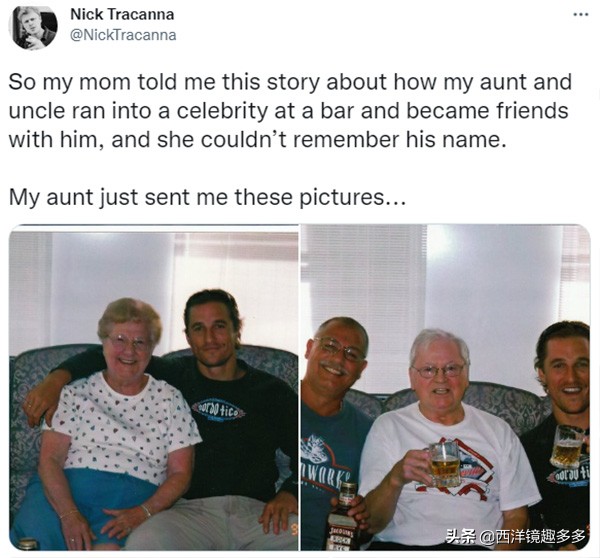 看到照片后,大家才知道,原来大妈口中的明星正是好莱坞著名演员马修·麦康纳!