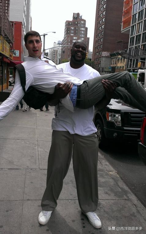 这位网友遇到了奥尼尔,还被大鲨鱼一把公主抱起!