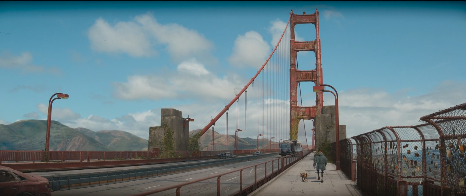 故事的最后,杰夫在安葬好芬奇后和古德耶尔重新出发,并如愿来到了金门大桥,找到了幸存者留下的信息。电影在杰夫和古德耶尔奔向人类社会的画面中缓缓落幕。