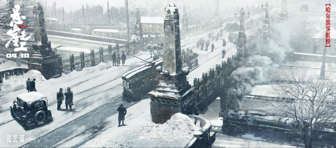 为了还原当年的真实情况,张艺谋导演率领专业之师辗转多地拍摄,1:1复刻还原三万多平米的哈尔滨中央大街、亚西亚电影院、马迭尔宾馆等地标建筑。