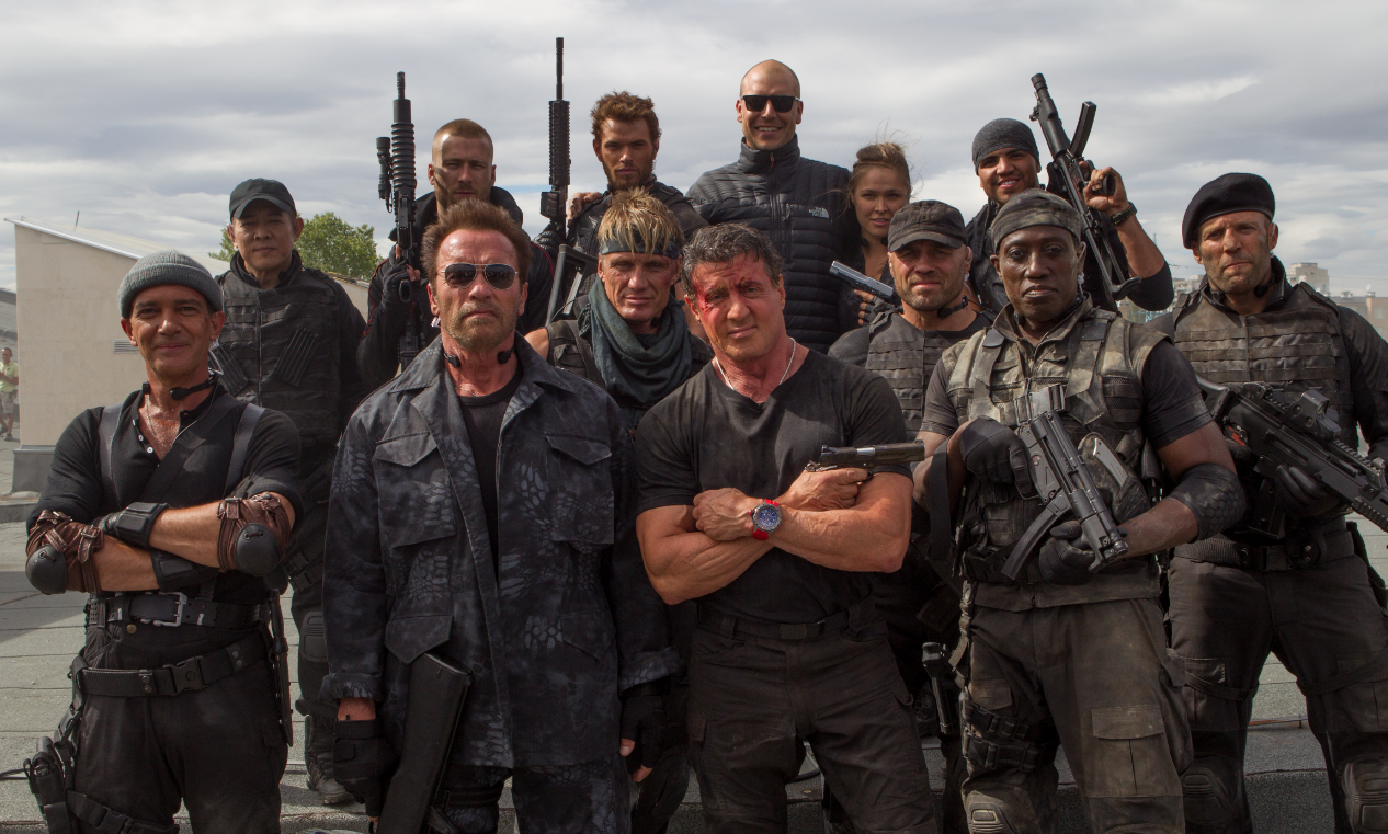 所以他们这些不服老的前巨星,有时候会联合起来拍片“夕阳红”一把,比如卡司大到吓死人的《敢死队》系列,其实根本没被好莱坞主流片商看在眼里