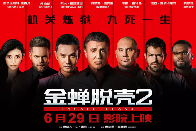 五年前的《金蝉脱壳》第一部,其实就是这些老巨星们抱团取暖的另一部片子,阿诺和史泰龙两大巨星,让这部电影还是稍微有了不错的票房