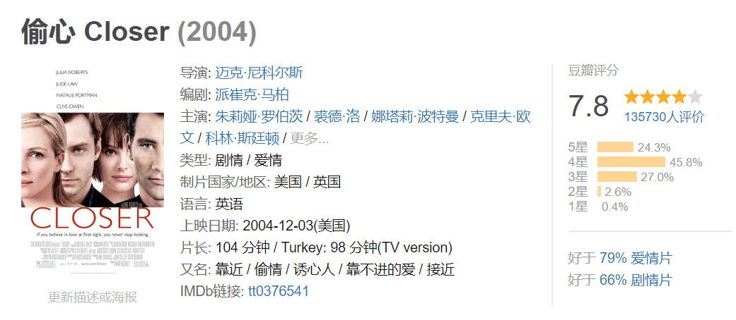 观影感受:再甜蜜的爱情,仅需一夜就会破灭,当你遇到更好的,你发现你并不是很爱现任!