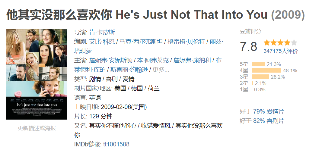 8、《他其实没那么喜欢你》:美国电影,豆瓣评分7.8