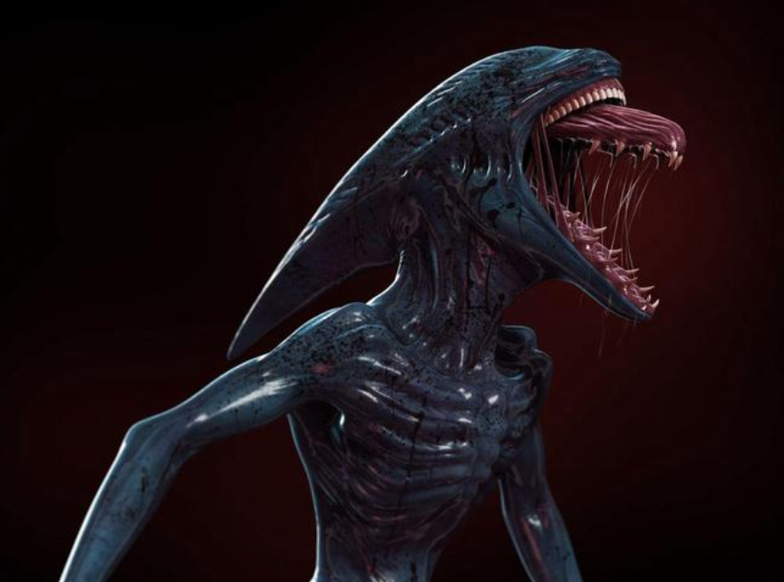 我们最为印象深刻的异形形象,恐怕还是没有眼睛长长的脑袋;血盆大口里长着牙齿的舌头;长而有力末端如利刃一般尖锐的尾巴;还有强酸的血液。异形的个头看上去并不魁梧,但乌黑光滑的躯体,总是让人敬而远之。