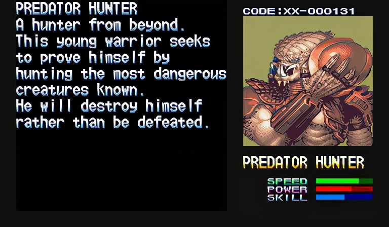 在游戏一开始,玩家有4位主角可供选择,其中2名为人类阵营,他们是美国海军陆战队达奇少校与黑泽林中尉。另外2名则为铁血战士阵营,分别是注重个人荣誉的铁血冠军斗士与不择手段只为享受狩猎快感的狂血猎人。