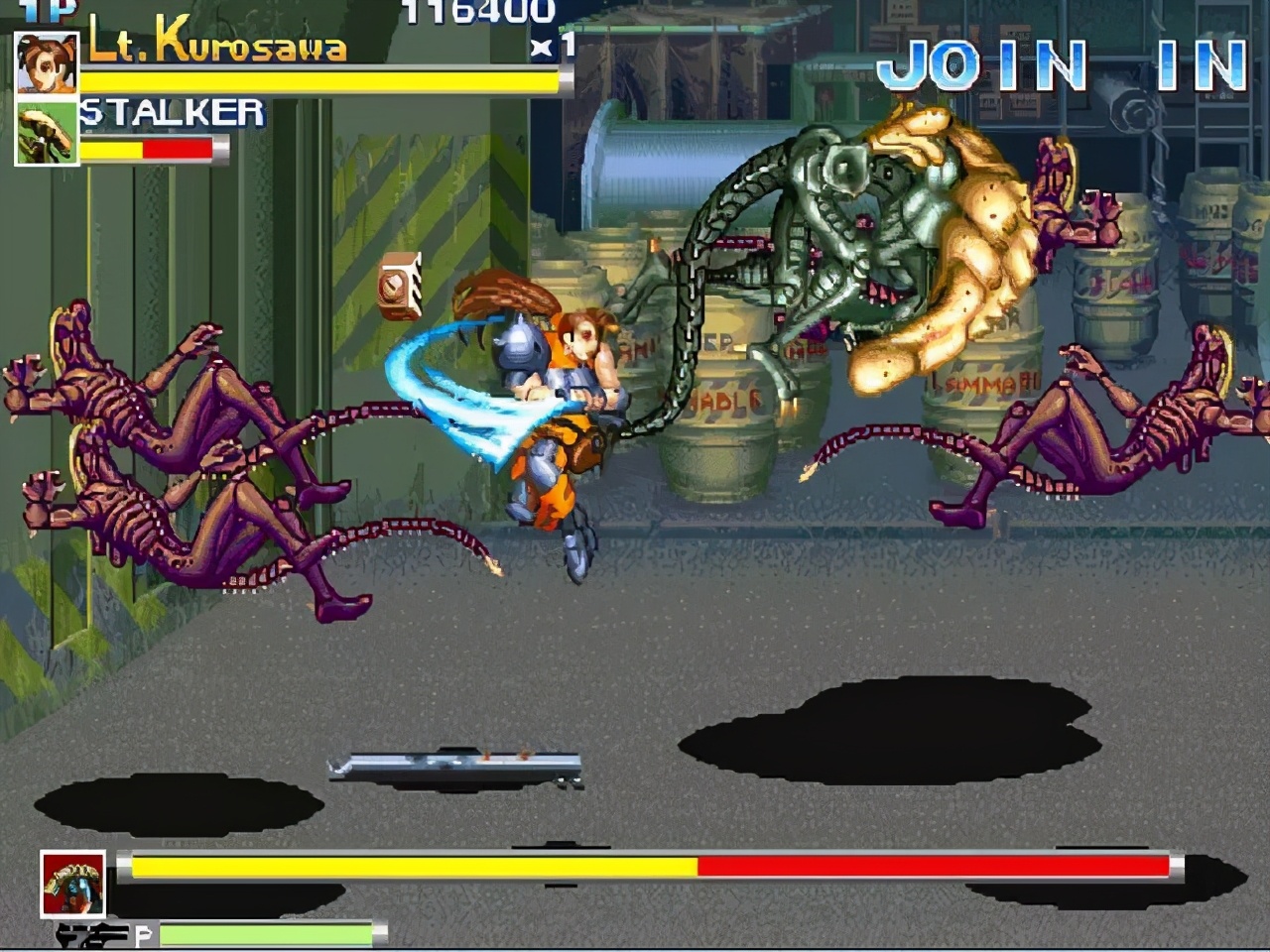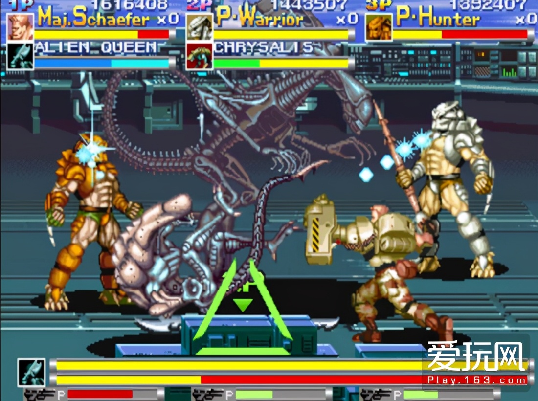 第一部《异形大战铁血战士》上映的时候,是2004年,但其实电影并不是第一个把异形和铁血约架约到一块的。早在十年之前,1994年,日本著名游戏厂商卡普空就发行了一款名叫《异形大战铁血战士》的横版清关街机游戏。