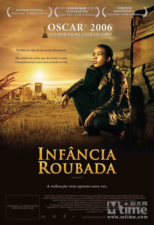 而导演也不在局限于个人的长大成人,更是一个百废待兴的国家的热切期望。影片将尖锐的种族冲突改成现实中南非社会极度的贫富分化,从第一个镜头就可以看出,伴随节奏强烈的祖鲁语说唱乐,小混混从铁皮阁楼里走出来,画面跟随他的移动,摇出一个烟雾缭绕的非洲大都会边缘的贫民窟,一大片望不到尽头的低矮棚户区,穷人都站在明媚的阳光下——几个利索的跳接之后,四个小流氓已身处南非首都约翰内斯堡现代化的摩天大楼之中,他们开始向有钱人下手,伴随着血腥和战栗,这就是他们赖以生存的日常生活。从灯火璀璨的都市夜景到低矮破烂的棚户民居,让我们仿佛触摸到了真实生活的粗砺质地。南非电影人面对现实的勇气与魄力、干净利索的表现手法让人佩服。