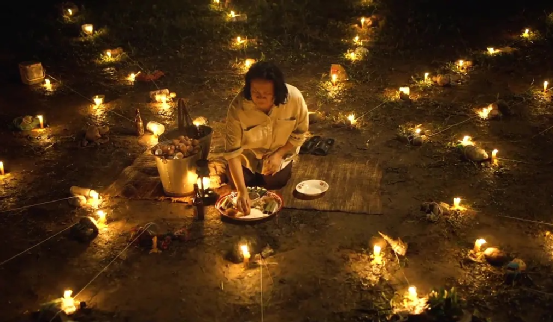 通过记者的影像,我们看到了女巫师和她的亲属们一点一点走向崩溃,人性的复杂阴暗、传统信仰的式微和怨灵的威慑都隐藏在镜头里。透过这些细节,观众可以感受到善神-巴扬与怨灵集群的那种无形操控,惊悚感张力十足。